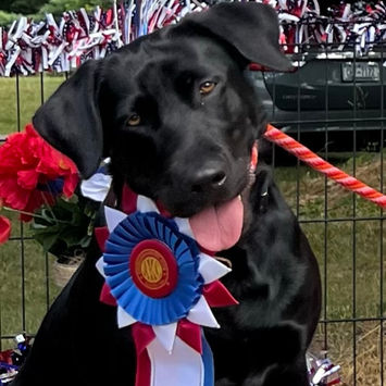"Juno" - AKC Artemis Rising JH, CGC, FCAT finished the 2024 season as the 4th fastest Labrador Retriever in AKC FASTCAT! Juno is a sweet & patient, mild mannered, thoughtful dog who companions with Victoria when it is appropriate in training to shepherd less confident dogs along, and to work with reactive dogs.
